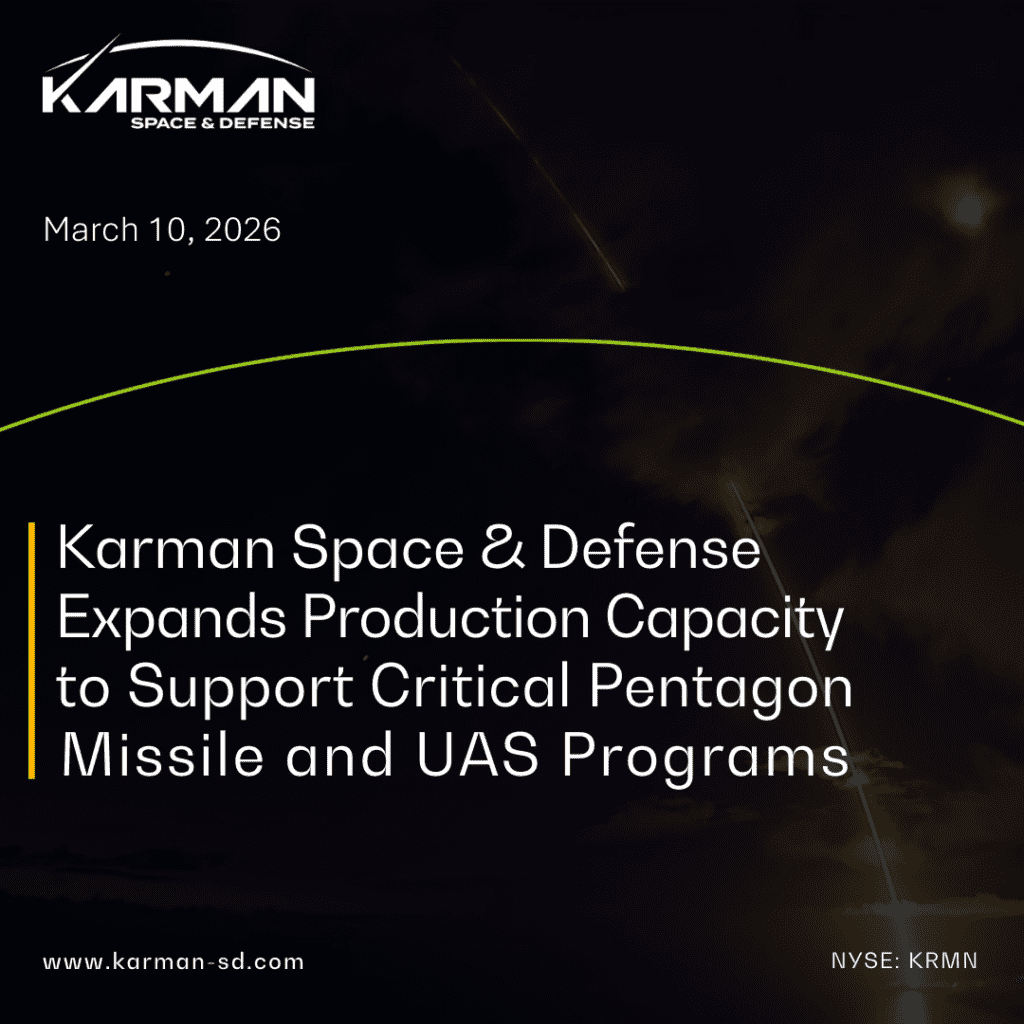 HUNTINGTON BEACH, Calif.–(BUSINESS WIRE)–Karman Space & Defense (“Karman”, “Karman Holdings Inc.” or “the Company”) (NYSE: KRMN), a leader in the rapid design, development and production of critical, next-generation system solutions that align with the U.S. Department of War’s core mission priorities and the nation’s accelerating demand for access to space, today announced it will open a new, state-of-the-art-facility in the greater Salt Lake City, Utah area to expand its advanced UAS launcher systems and SRM nozzle production capacity to meet substantial increases in customer demand. The Company also announced it has invested more than $15 million over the past 12 months to expand production capacity at its existing manufacturing facilities, in addition to its $5 million investment matched by the U.S. Department of War Defense Production Act Title III $5 million funding to further expand capacity.